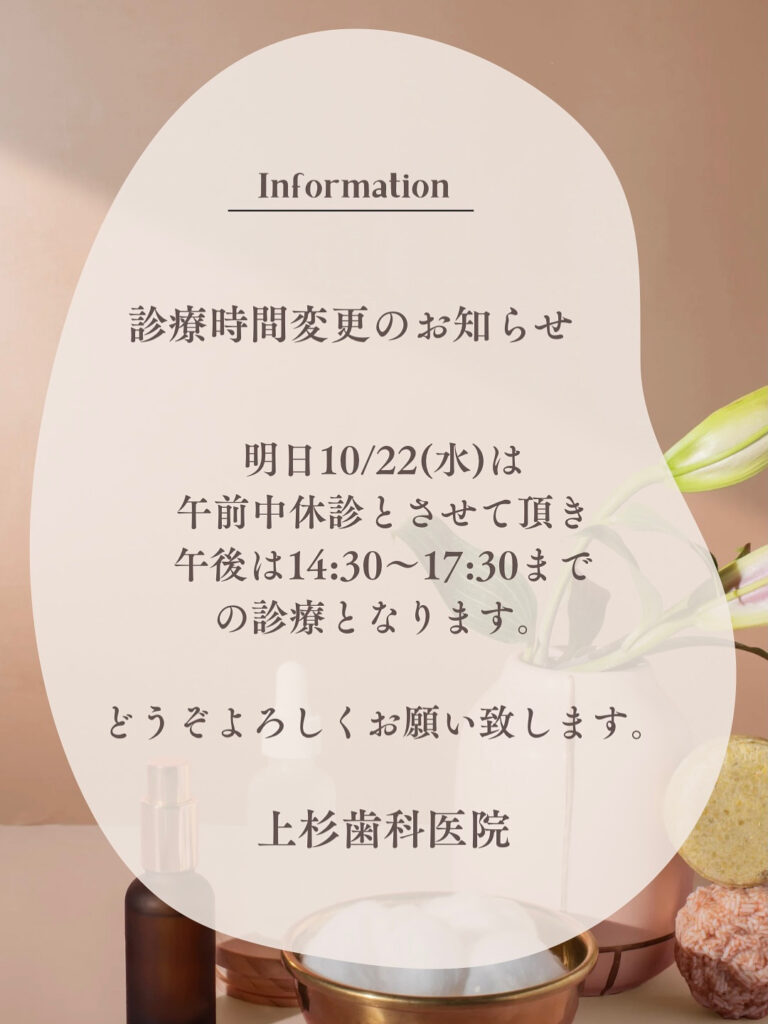 10/22(水)診療時間変更のお知らせ