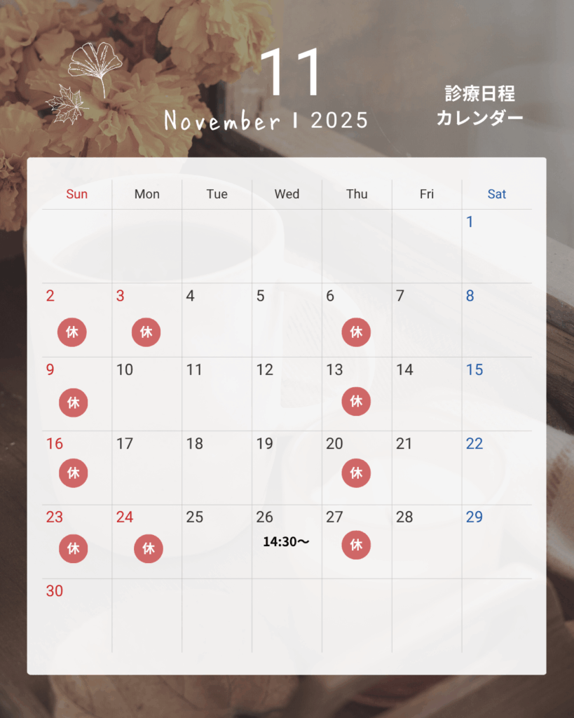 | 診療時間 | 月 | 火 | 水 | 木 | 金 | 土 | 日 |